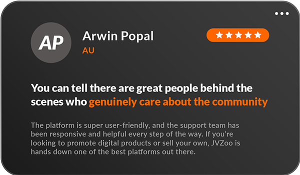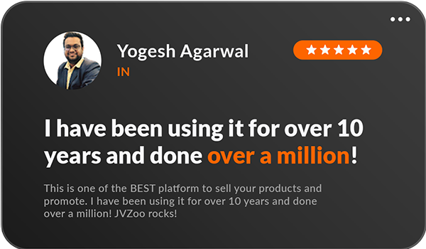 JVZoo is the only platform that turns progress into celebration. From your first sales to your first six figures and beyond, we make sure your momentum gets the recognition it deserves.