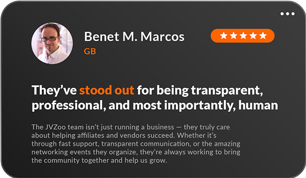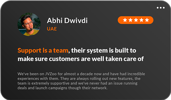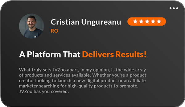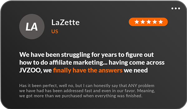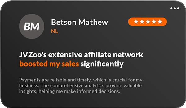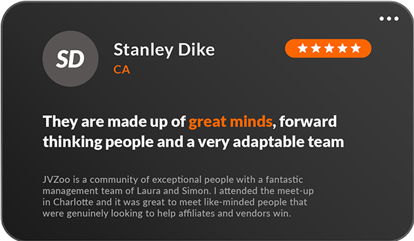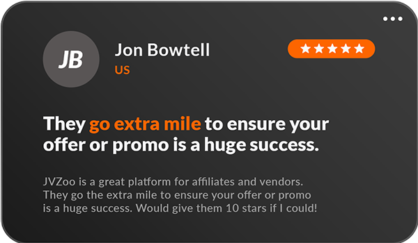 “After moving to JVZoo, everything changed for my business. Without any additional effort on my part, we achieved dramatically better processing, saw more affiliates jumping on board organically, and completely transformed our entire operation. The difference has been business-changing.”